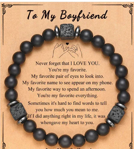 The Black Matte Volcanic Stone Bracelet with Card Suit Design is a stylish and meaningful accessory, perfect for anyone looking to combine fashion with symbolism. This bracelet makes a bold statement with its unique blend of natural materials and iconic design elements.