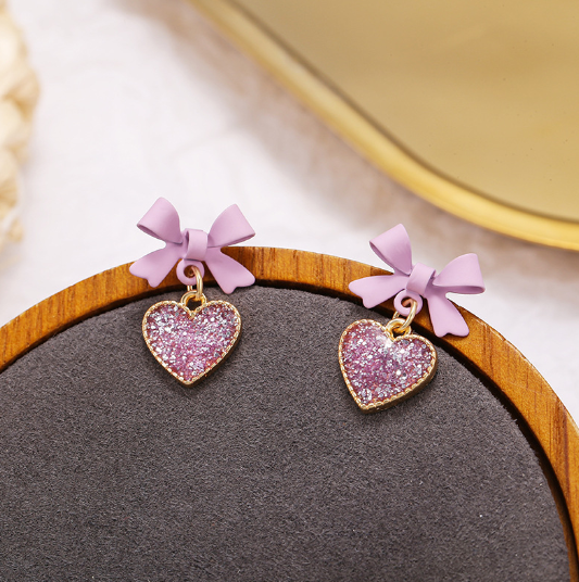 Elevate your accessory game with our stunning New Korean Style Purple Bow Sequin Love Heart Clip On Earrings. These delightful earrings are designed for the modern woman who seeks to express her unique style effortlessly. Crafted from high-quality alloy, these earrings feature a charming heart shape adorned with sparkling sequins, making them perfect for any occasion. With a simple yet elegant design, these earrings add a touch of sweetness to your outfit. The lovely purple color combined with the playful bow detail makes them a standout piece that will surely turn heads. Each pair is expertly electroplated to ensure durability and a long-lasting shine, making them a great addition to your jewelry collection. Whether you're dressing up for a special event or adding a playful touch to your everyday look, these earrings are the perfect accessory. Packing list: earrings x1 pair