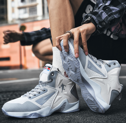 Discover the ultimate blend of style and functionality with our high-top men's shoes. Designed for the versatile athlete, these lightweight basketball boots are your perfect companion on and off the court. Featuring a front tie wearing style, they ensure a snug fit while allowing for easy adjustments to suit your needs.
