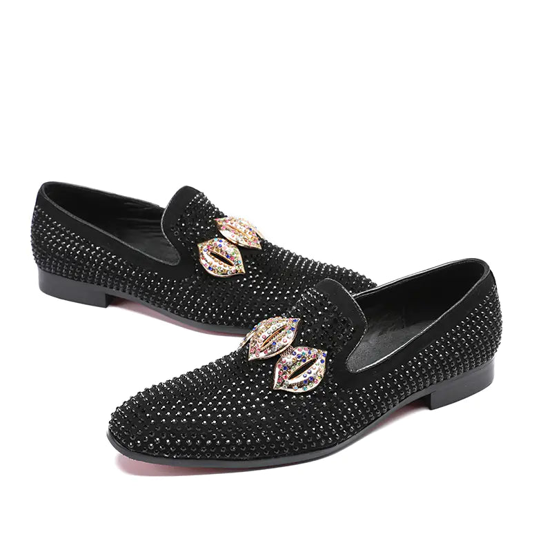 Men's Pointed Leather Shoes with Rhinestones for Stylists