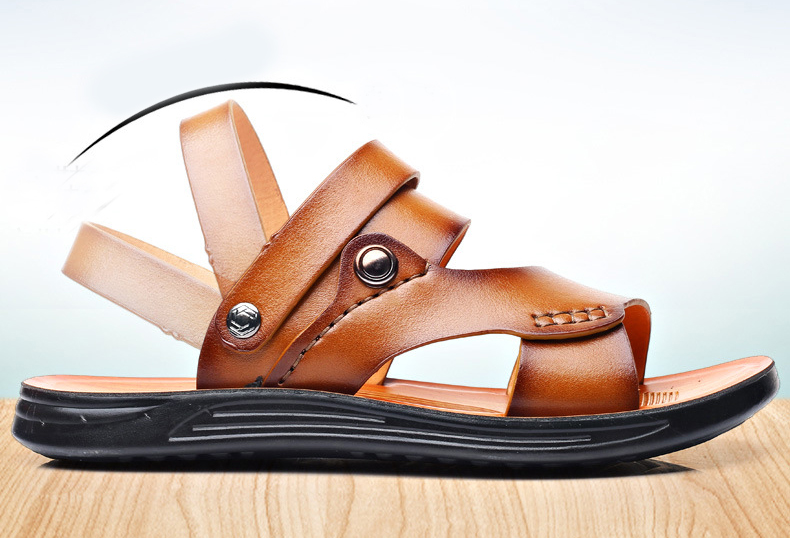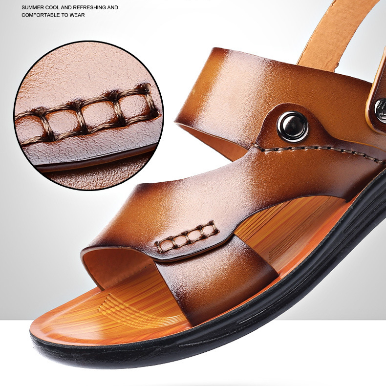 Made from high-quality cowhide for the upper and featuring a soft polyurethane sole, these sandals provide durability and comfort all day long. The open toe style ensures breathability, making them perfect for warm summer days. Choose from three sophisticated colors: black, khaki, and dark brown, allowing you to pair them effortlessly with any outfit.