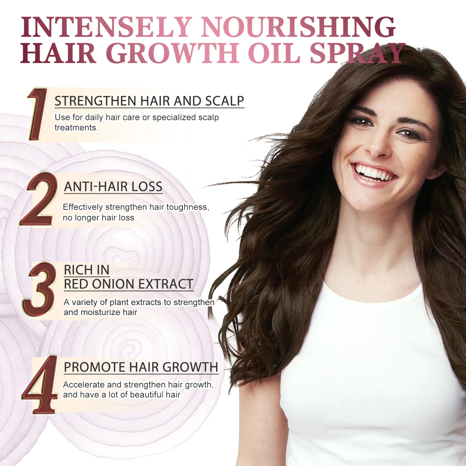 Achieve stronger, shinier, and more resilient hair with the power of onion extract in this nourishing hair spray.