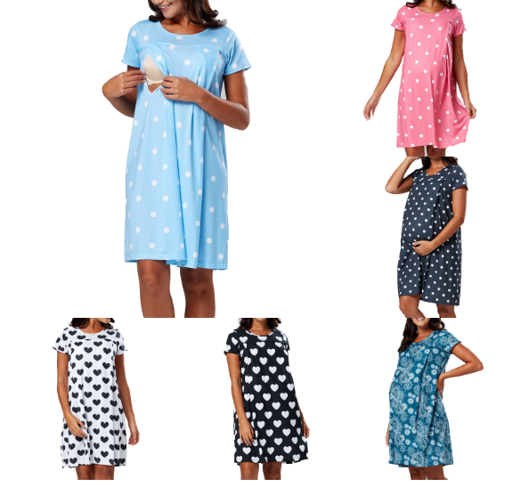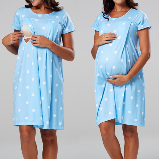 Short Sleeve Knee Length Maternity Dress with Nursing Openings