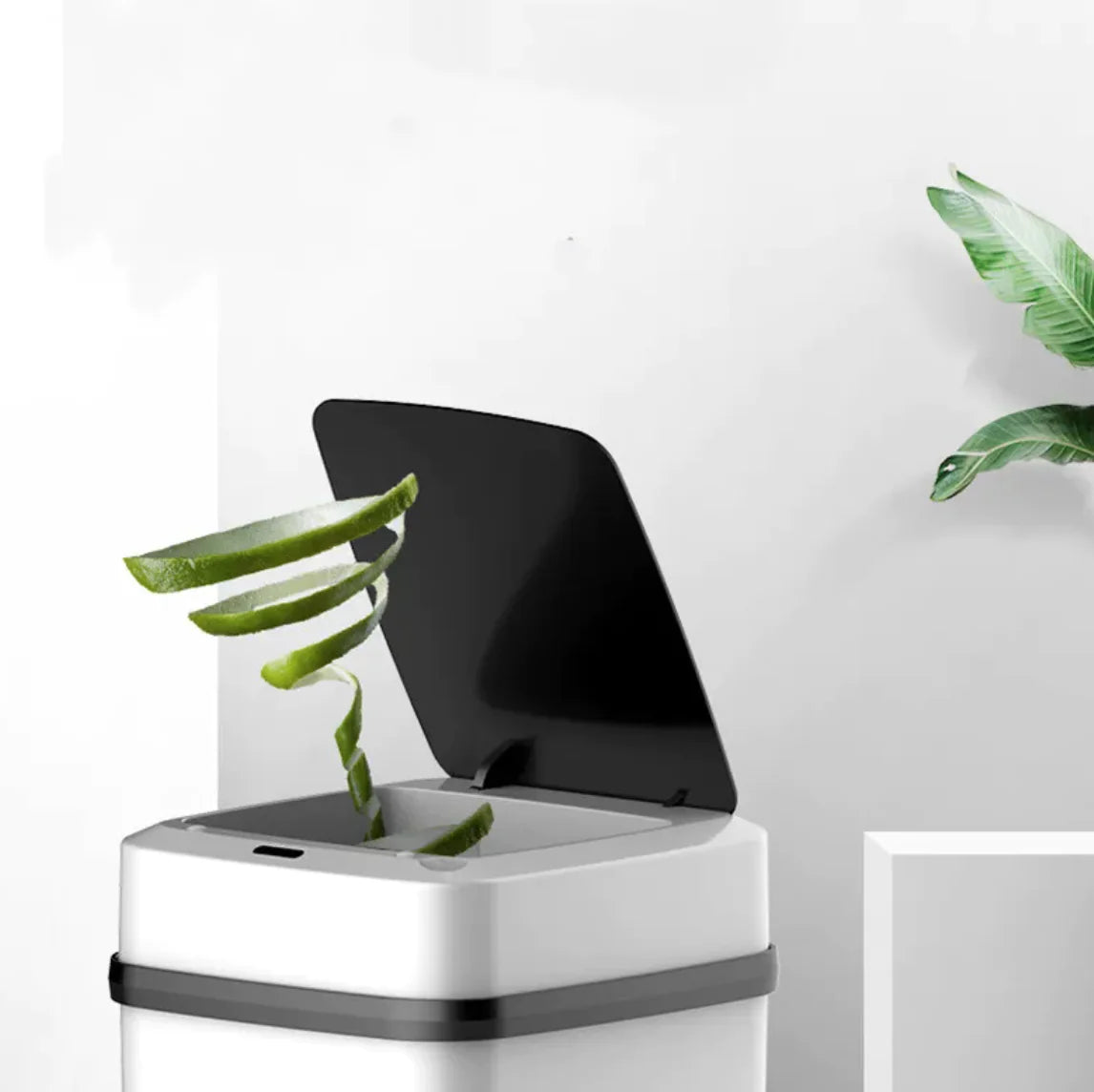 Innovative smart trash can with automatic sensor technology for hands-free use, perfect for maintaining cleanliness and hygiene in any space, opens and closes automatically, reducing contact with surfaces, sleek and modern design, suitable for kitchens, bathrooms, or offices, equipped with odor control and a silent lid, energy-efficient and easy to operate, durable and easy to clean