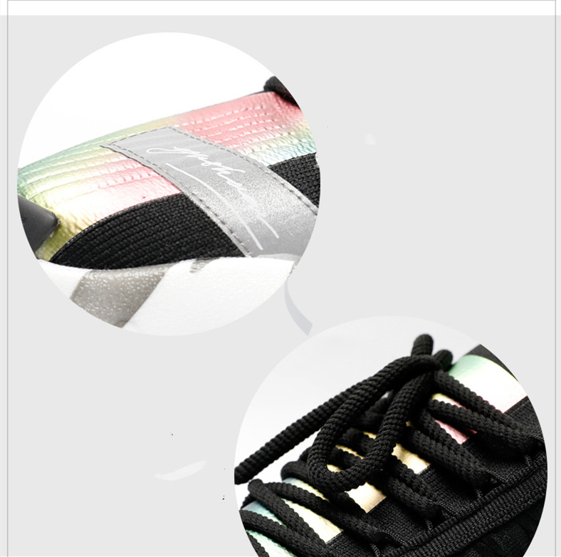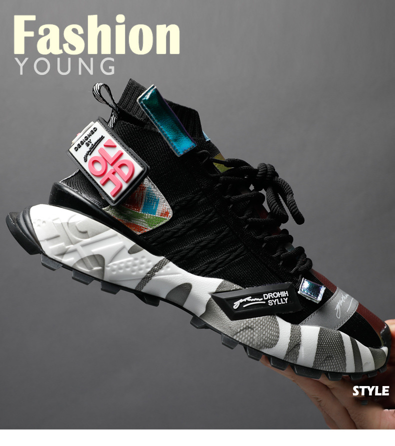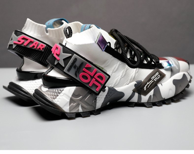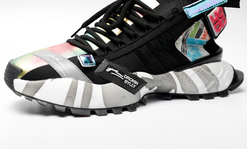 Crafted from a unique combination of leather and fly weave materials, these shoes offer a lightweight feel, ensuring your feet stay cool and comfortable no matter where your day takes you. The rubber sole provides excellent traction, making them suitable for various sports activities, while the thick sole heel shape adds a modern touch to your outfit.